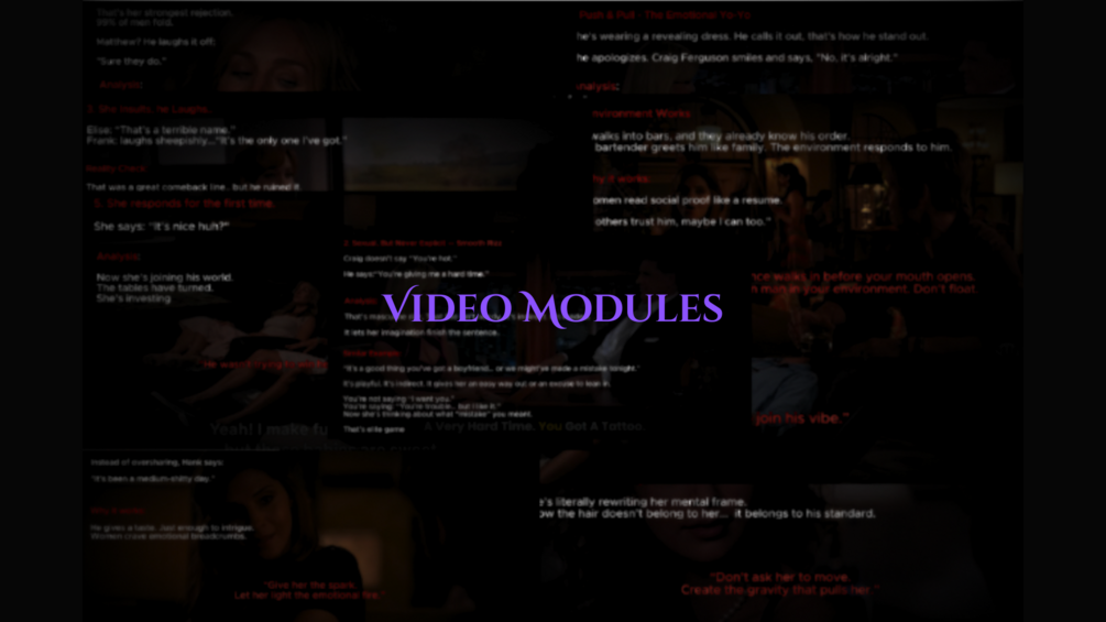 You’ll get short, high-impact video breakdowns (2–4 min each) where I take real scenes from movies and TV shows and show you exactly how the guy: